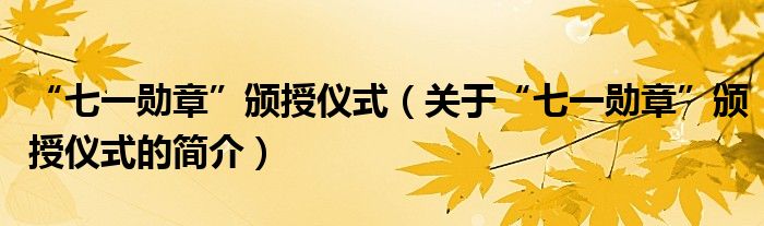 大家好,很多人对“七一勋章”颁授仪式,关于“七一勋章”颁授仪式的简介这个还不是很了解,现在让我们一起来看看吧!