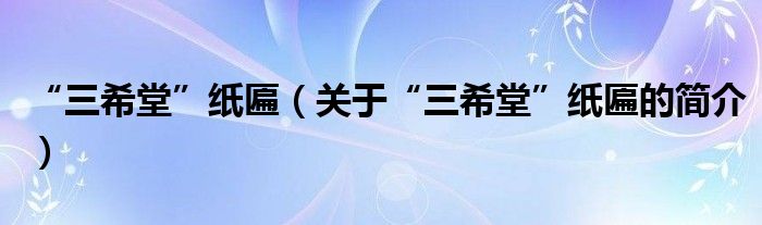 “三希堂”纸匾(关于“三希堂”纸匾的简介)