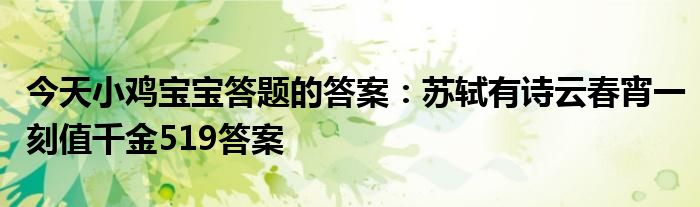 今天小鸡宝宝答题的答案:苏轼有诗云春宵一刻值千金519答案