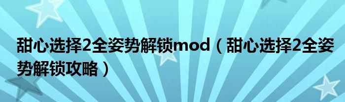 甜心选择2全姿势解锁mod(甜心选择2全姿势解锁攻略)