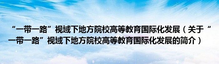 “一带一路”视域下地方院校高等教育国际化发展(关于“一带一路”视域下地方院校高等教育国际化发展的简介)