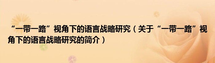 以上就是【“一带一路”视角下的语言战略研究,关于“一带一路”视角下的语言战略研究的简介】相关内容。