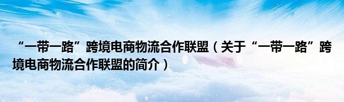 “一带一路”跨境电商物流合作联盟(关于“一带一路”跨境电商物流合作联盟的简介)
