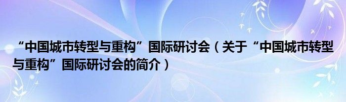“中国城市转型与重构”国际研讨会(关于“中国城市转型与重构”国际研讨会的简介)