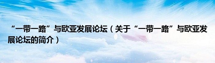 大家好,很多人对“一带一路”与欧亚发展论坛,关于“一带一路”与欧亚发展论坛的简介这个还不是很了解,现在让我们一起来看看吧!