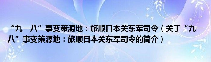 以上就是【“九一八”事变策源地:旅顺日本关东军司令,关于“九一八”事变策源地:旅顺日本关东军司令的简介】相关内容。