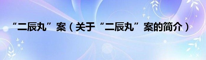 以上就是【“二辰丸”案,关于“二辰丸”案的简介】相关内容。