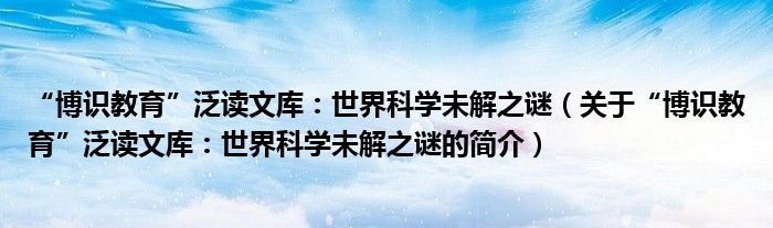 大家好,很多人对“博识教育”泛读文库:世界科学未解之谜,关于“博识教育”泛读文库:世界科学未解之谜的简介这个还不是很了解,现在让我们一起来看看吧!