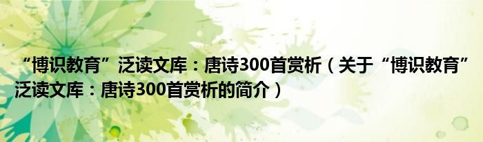 “博识教育”泛读文库:唐诗300首赏析(关于“博识教育”泛读文库:唐诗300首赏析的简介)