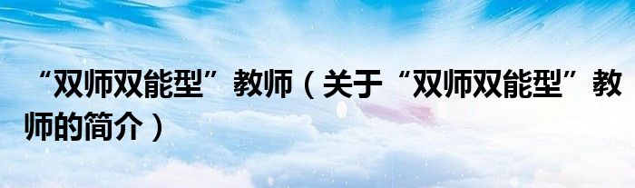 “双师双能型”教师(关于“双师双能型”教师的简介)