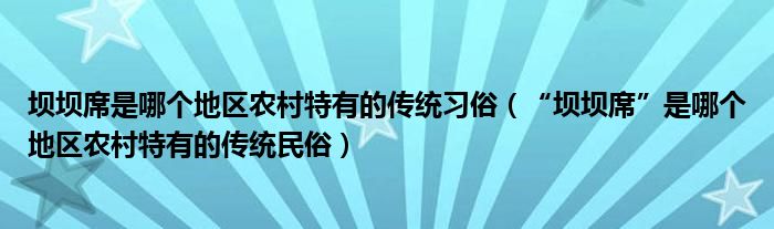 大家好,小太来为大家解答以上问题。坝坝席是哪个地区农村特有的传统习俗,“坝坝席”是哪个地区农村特有的传统民俗这个很多人还不知道,现在让我们一起来看看吧!