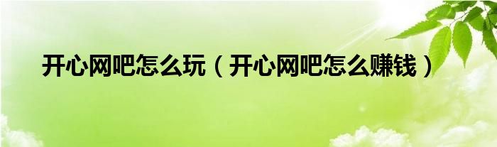 开心网吧怎么玩(开心网吧怎么赚钱)