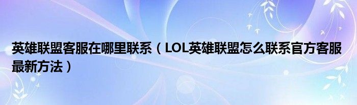 以上就是【英雄联盟客服在哪里联系,LOL英雄联盟怎么联系官方客服最新方法】相关内容。