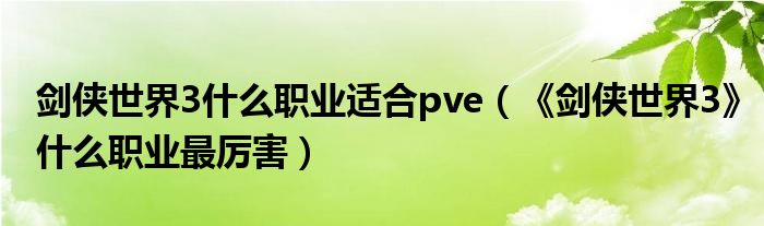 以上就是【剑侠世界3什么职业适合pve,《剑侠世界3》什么职业最厉害】相关内容。