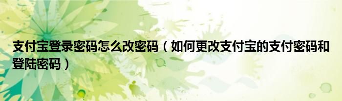 支付宝登录密码怎么改密码(如何更改支付宝的支付密码和登陆密码)