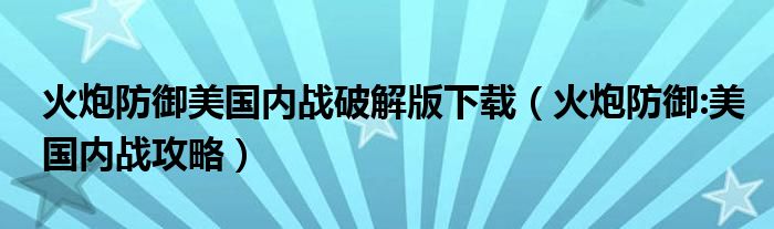 火炮防御美国内战破解版下载(火炮防御:美国内战攻略)