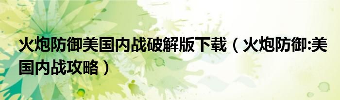 大家好,小太来为大家解答以上问题。火炮防御美国内战破解版下载,火炮防御:美国内战攻略这个很多人还不知道,现在让我们一起来看看吧!