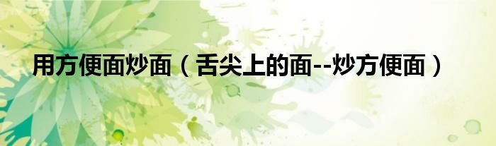 以上就是【用方便面炒面,舌尖上的面--炒方便面】相关内容。