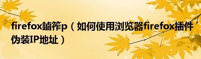 以上就是【firefox鏀筰p,如何使用浏览器firefox插件伪装IP地址】相关内容。