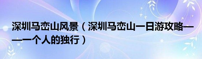 以上就是【深圳马峦山风景,深圳马峦山一日游攻略——一个人的独行】相关内容。