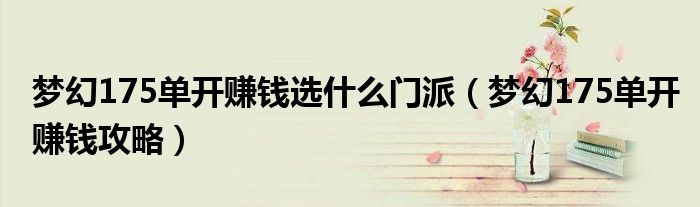 梦幻175单开赚钱选什么门派(梦幻175单开赚钱攻略)