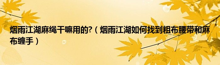烟雨江湖麻绳干嘛用的?(烟雨江湖如何找到粗布腰带和麻布缠手)