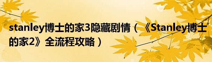 stanley博士的家3隐藏剧情(《Stanley博士的家2》全流程攻略)