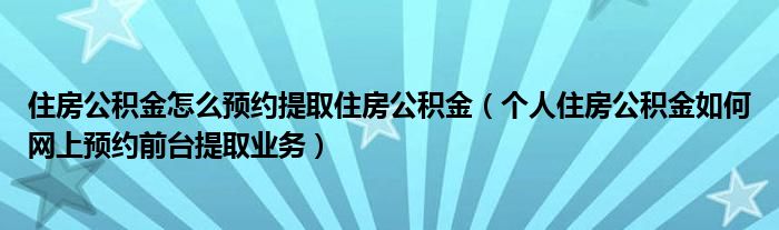 住房公积金怎么预约提取住房公积金(个人住房公积金如何网上预约前台提取业务)