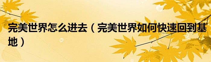 以上就是【完美世界怎么进去,完美世界如何快速回到基地】相关内容。