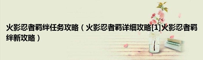 火影忍者羁绊任务攻略(火影忍者羁详细攻略[1]火影忍者羁绊新攻略)