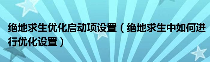 绝地求生优化启动项设置(绝地求生中如何进行优化设置)