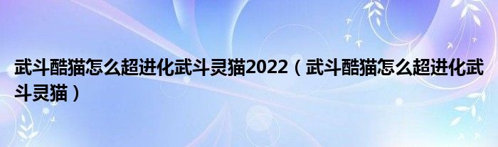 武斗酷猫怎么超进化武斗灵猫2022(武斗酷猫怎么超进化武斗灵猫)
