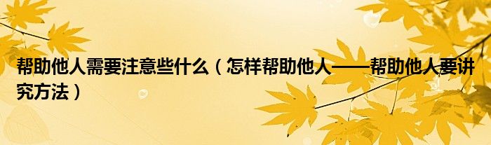 帮助他人需要注意些什么(怎样帮助他人——帮助他人要讲究方法)