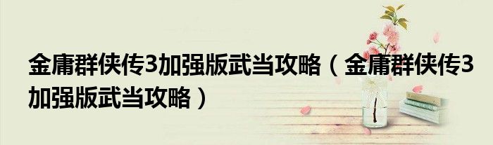 金庸群侠传3加强版武当攻略(金庸群侠传3加强版武当攻略)
