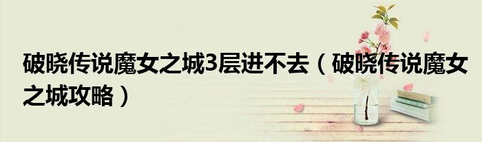 破晓传说魔女之城3层进不去(破晓传说魔女之城攻略)