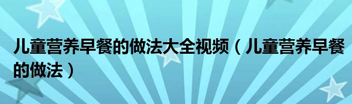 儿童营养早餐的做法大全视频(儿童营养早餐的做法)