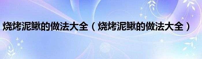 烧烤泥鳅的做法大全(烧烤泥鳅的做法大全)