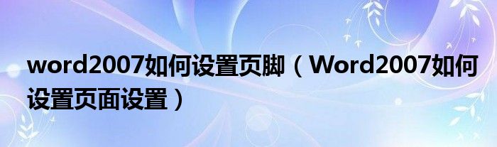 word2007如何设置页脚(Word2007如何设置页面设置)