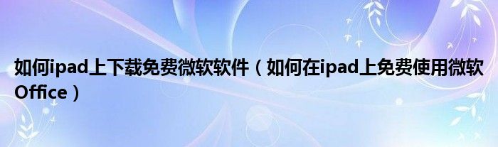 如何ipad上下载免费微软软件(如何在ipad上免费使用微软Office)