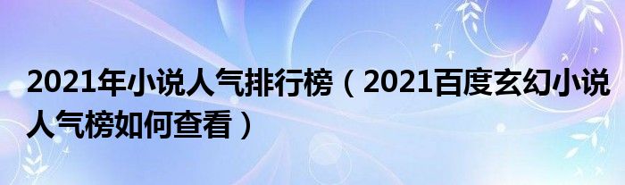 2021年小说人气排行榜(2021百度玄幻小说人气榜如何查看)