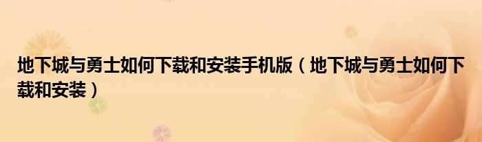 地下城与勇士如何下载和安装手机版(地下城与勇士如何下载和安装)