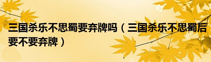 三国杀乐不思蜀要弃牌吗(三国杀乐不思蜀后要不要弃牌)