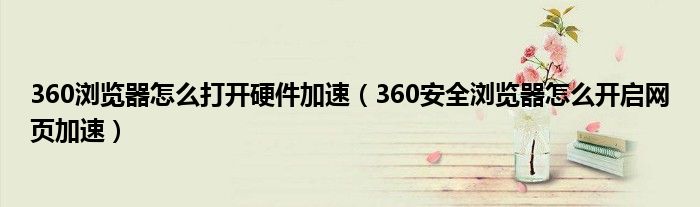 360浏览器怎么打开硬件加速(360安全浏览器怎么开启网页加速)