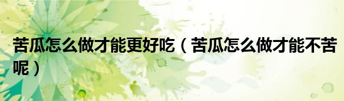 以上就是【苦瓜怎么做才能更好吃,苦瓜怎么做才能不苦呢】相关内容。