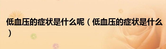 大家好,小太来为大家解答以上问题。低血压的症状是什么呢,低血压的症状是什么这个很多人还不知道,现在让我们一起来看看吧!