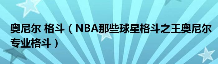 奥尼尔 格斗(NBA那些球星格斗之王奥尼尔专业格斗)