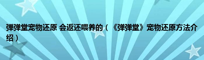 弹弹堂宠物还原 会返还喂养的(《弹弹堂》宠物还原方法介绍)