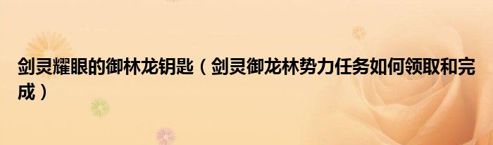 剑灵耀眼的御林龙钥匙(剑灵御龙林势力任务如何领取和完成)