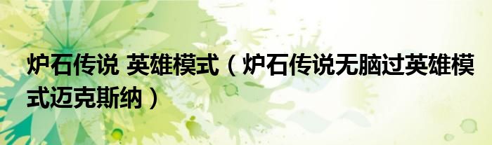 炉石传说 英雄模式(炉石传说无脑过英雄模式迈克斯纳)