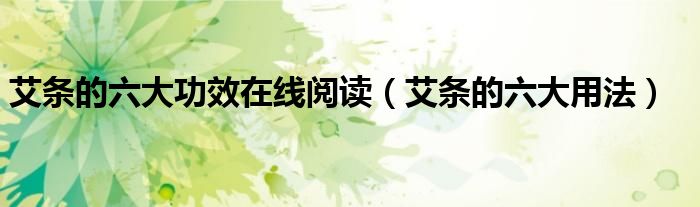 以上就是【艾条的六大功效在线阅读,艾条的六大用法】相关内容。